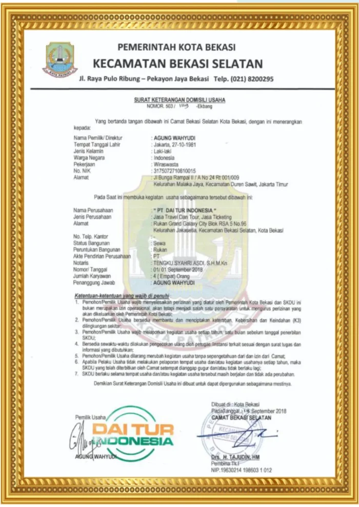 LEGALITAS DAITOUR INDONESIA